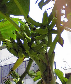 「車道と歩道の間にバナナの木」