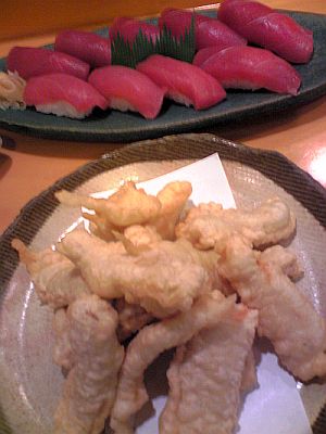 →多分鮮度が落ちてきた刺身を天ぷらにしてると思われます