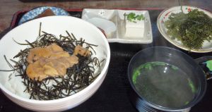 昼食時なので 古宇利島名物のウニ丼を出す店を物色し唯一開いていた店にて…実食!