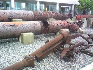 沖縄戦で使用されてた 酸素魚雷と高射砲の現物だそうです