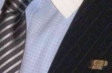 「要人の周囲でヘッドホン無線で連絡取り合っている人々」の胸元の写真です
