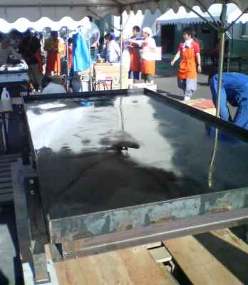 「炎天下」に「二畳程の巨大鉄板」の横で「延々とお好み焼きを作る」作業