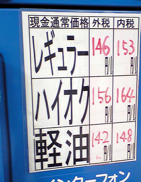 先週末の近所ののセルフGSの価格