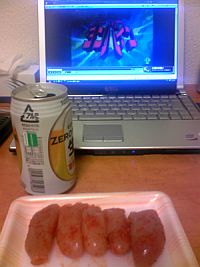 こんな感じに明太子食いながら
